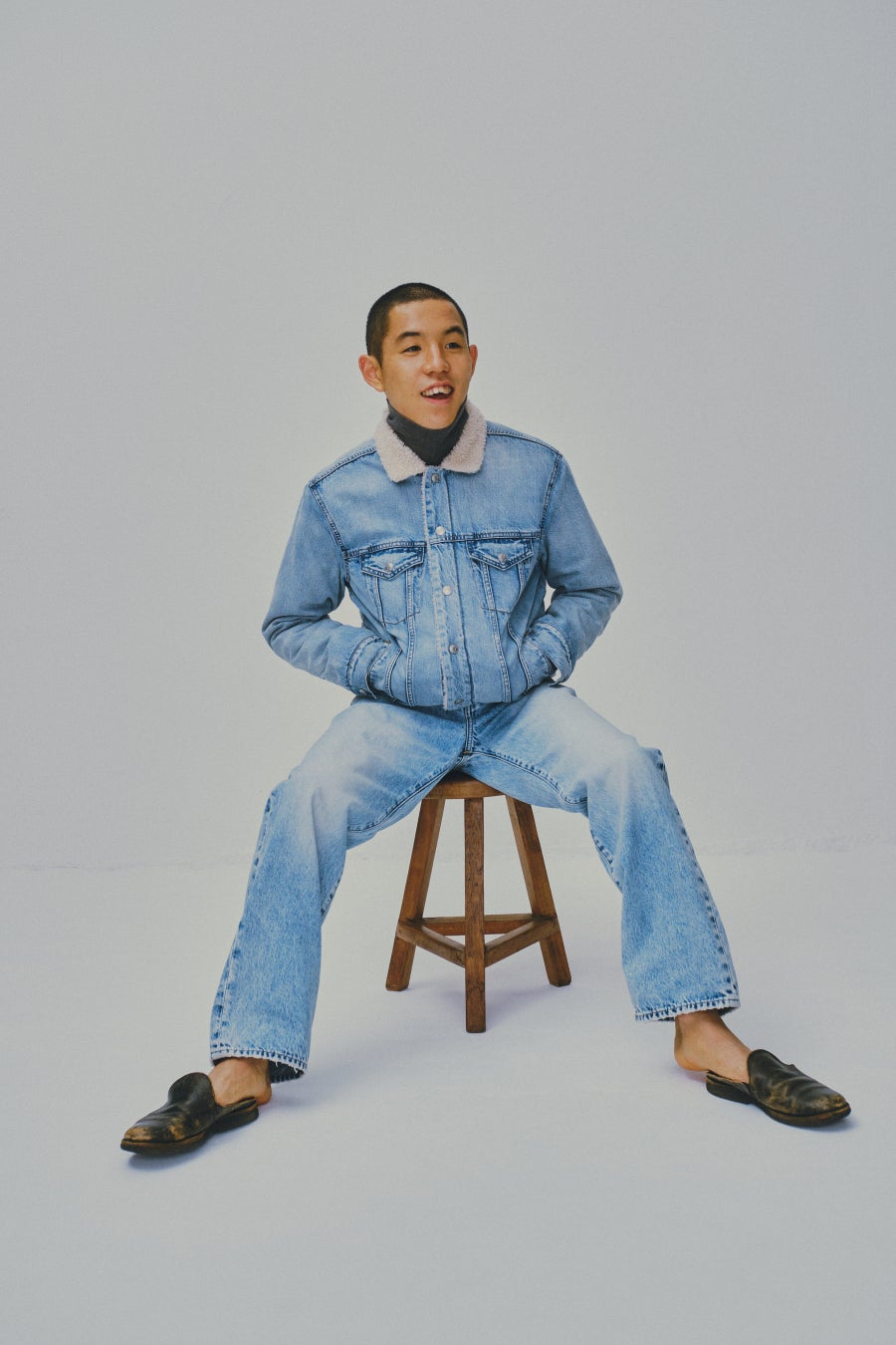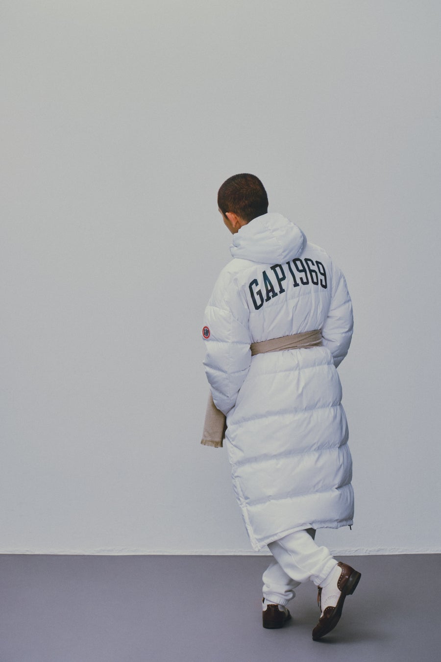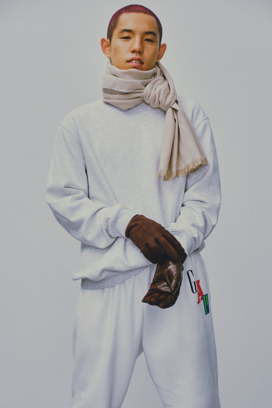 本記事では、デニムやオックスフォードシャツ、GAPロゴなど創業当時からのアイコニックなアイテムにフィーチャーしたGap ICONSと、ボアジャケットやダウンなど冬らしいファブリックやデザインのアイテムを使った真っ白なコーデや多彩なカラーでレイヤードしたスタイリングの2ルックを披露しています。3人のスタイリングは、スタイリストTEPPEI氏が担当し、Gapらしいプレイフルでスタイリッシュなアメリカンカジュアルを、TEPPEI氏らしい着る人の個性を引き立たせるカラーや小物合わせなどのエッセンスを加えて提案しています。