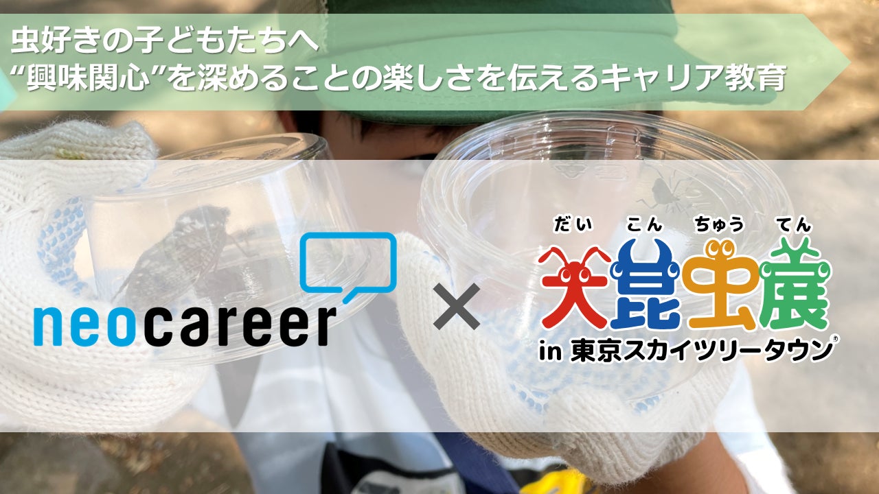 人材総合サービス会社の株式会社ネオキャリア(本社:東京都新宿区 代表取締役CEO:西澤亮一 以下ネオキャリア)は、2024年7月29日に、東京スカイツリータウンにて開催される「大昆虫展」のイベントプログラムへ出展します。当日は、虫の研究を行う東京大学大学院生と協働で虫に関するクイズや、実はすごい虫についての紹介、虫への興味関心の探求から学んだことについての講演などを行う予定です。