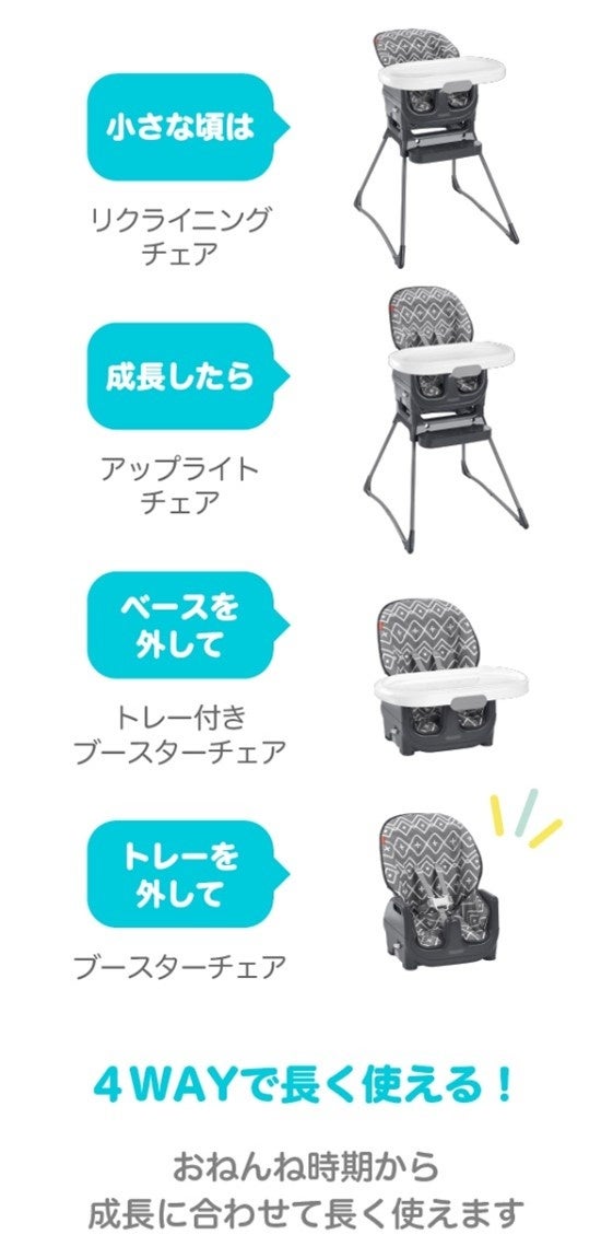 フィッシャープライスから多機能お食事用ハイチェアが登場!4つのモードに切り替え可能で、成長に合わせて長く使える!「4WAY デラックス ハイチェア」8月30日よりオンライン限定発売