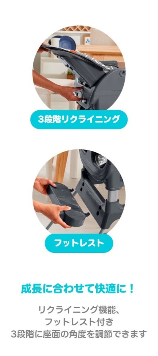 【Point】 プライス」からお子さまのお食事タイムをストレスフリーにする、「お食事用ハイチェア」が 登場! サポート! |