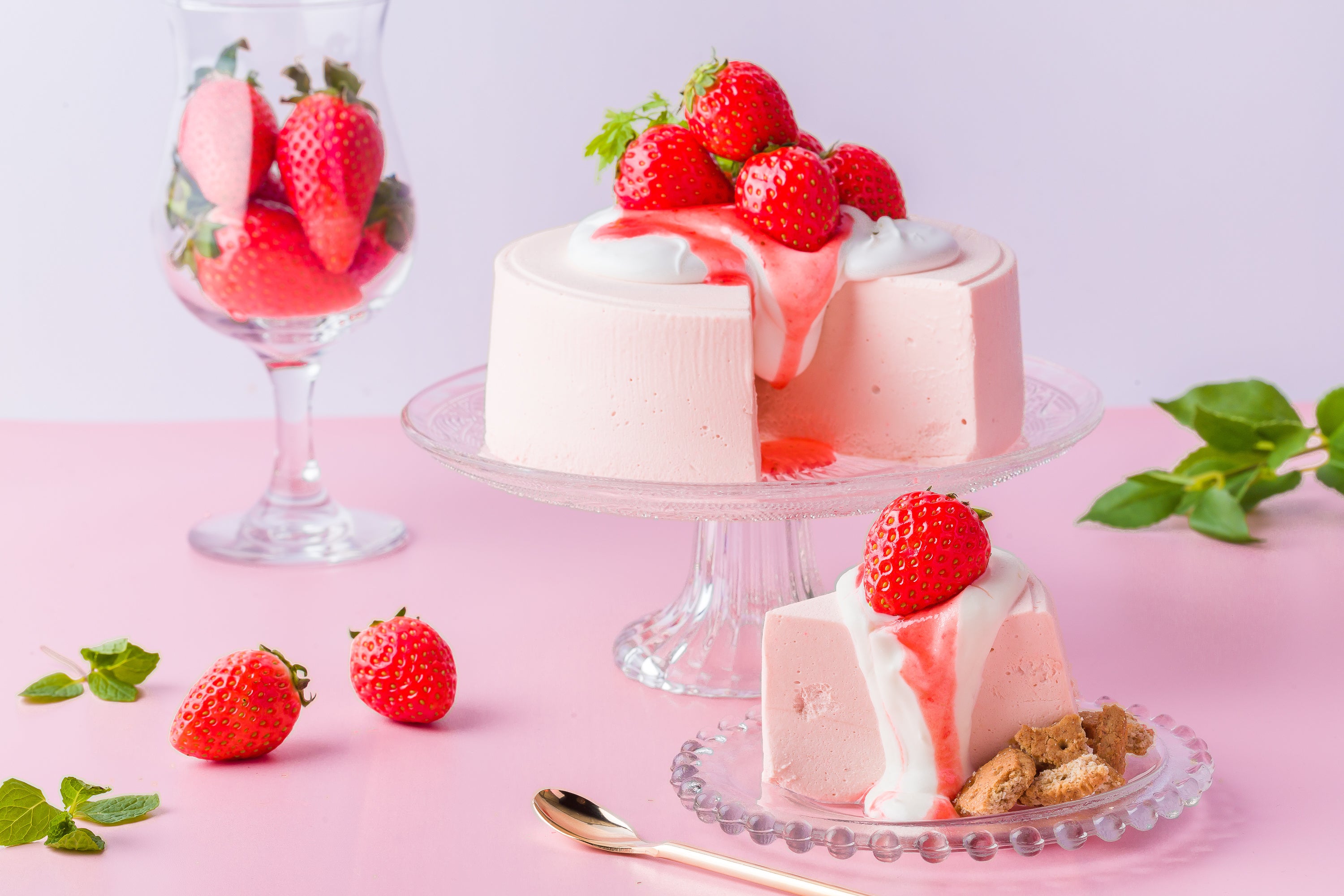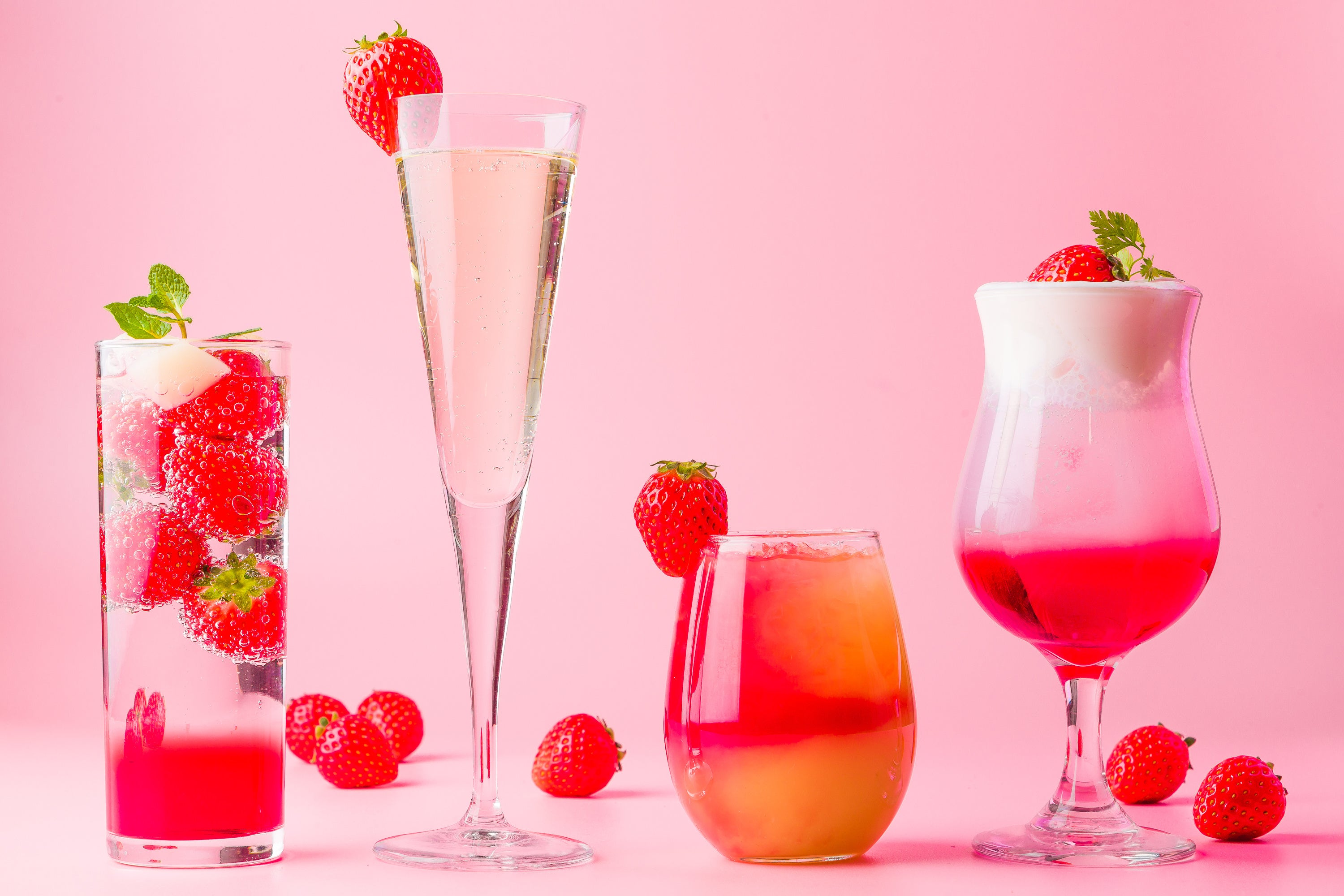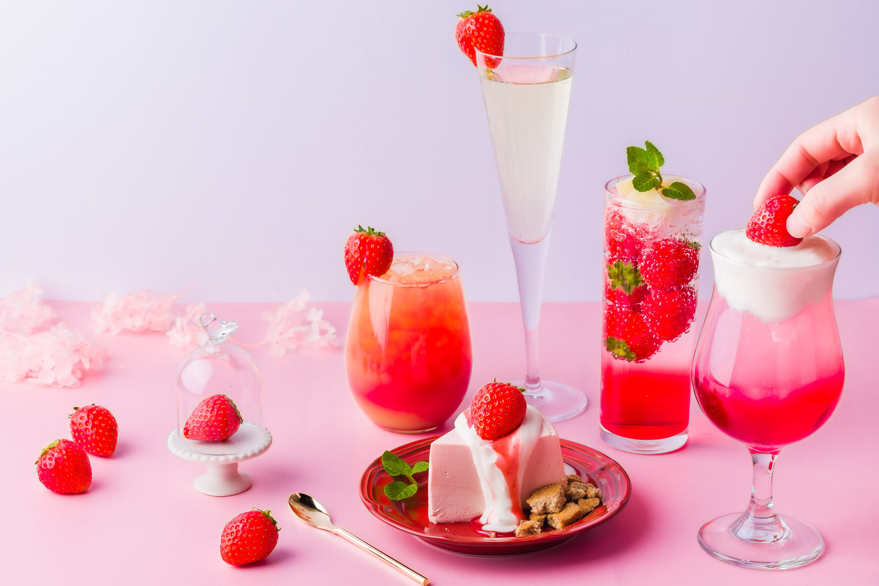 いちごを添えたスパークリングワインで乾杯♪インスタ映えするシャッターチャンスを演出します。