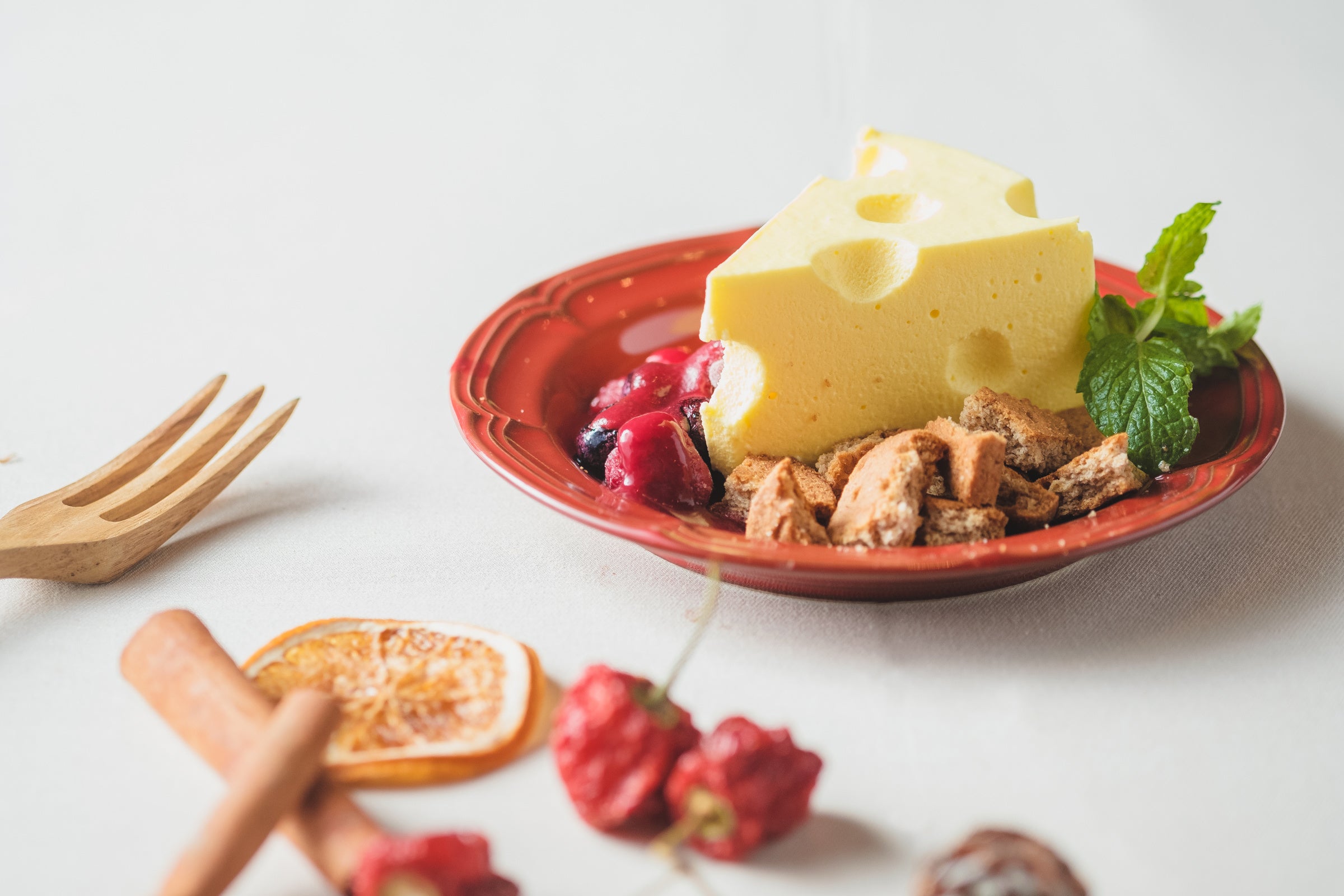 - 絵本に出てくるようなチーズの形のチーズケーキ