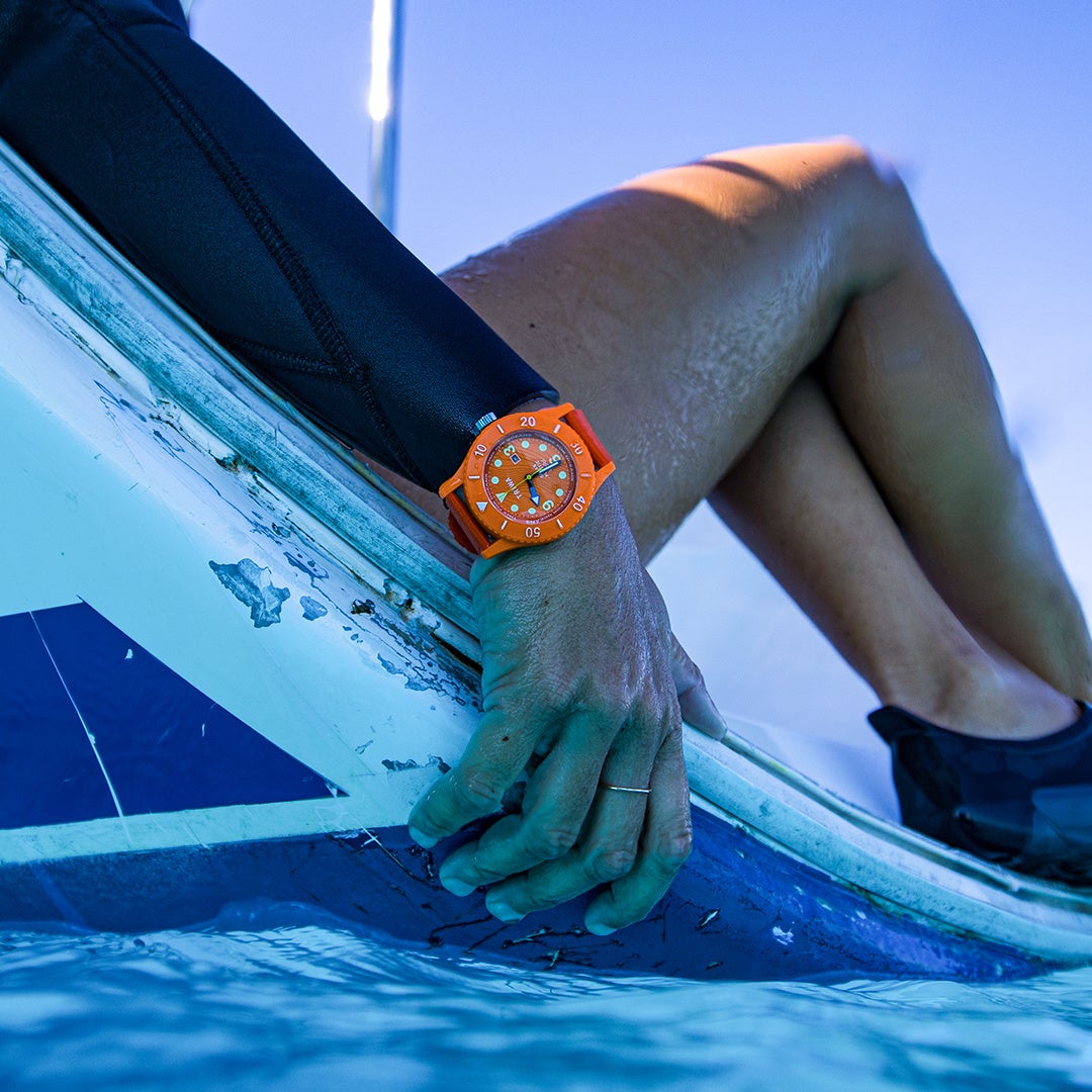 TRIWAのTIME FOR OCEANSとは、海を漂うプラスチックごみを回収してリサイクルした素材から出来た腕時計です。