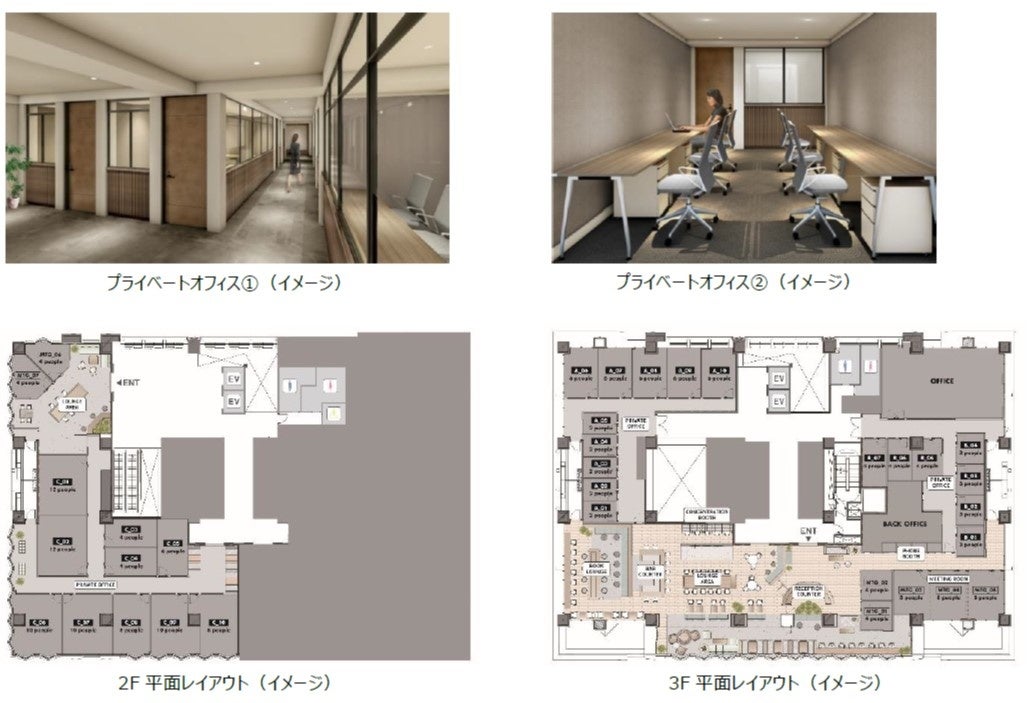 プライベートオフィス、コミュニティラウンジを併用した柔軟な働き方を提供します。
