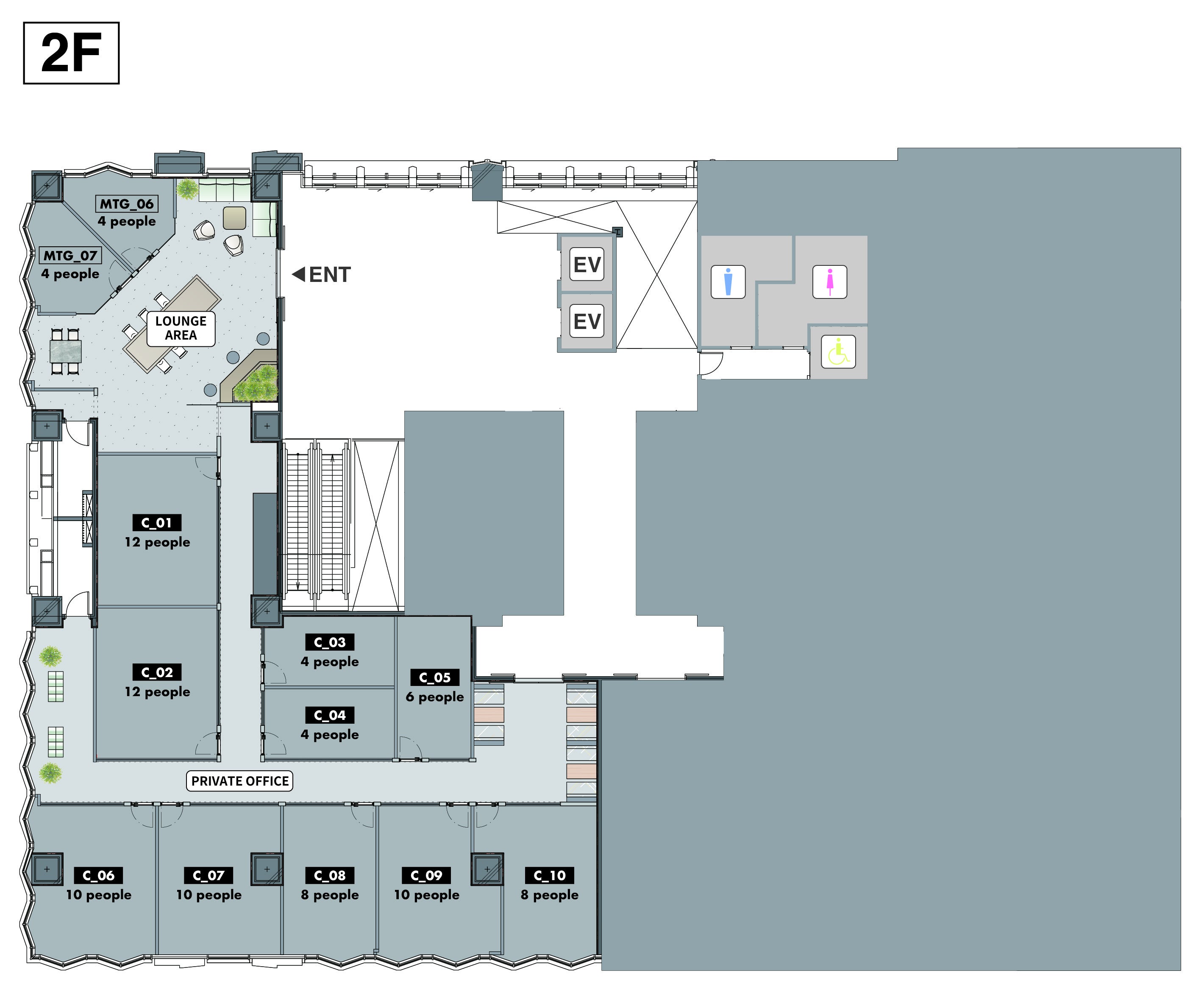 (1)個室オフィスの専属利用(プライベートオフィス) 26室(2~12名用)