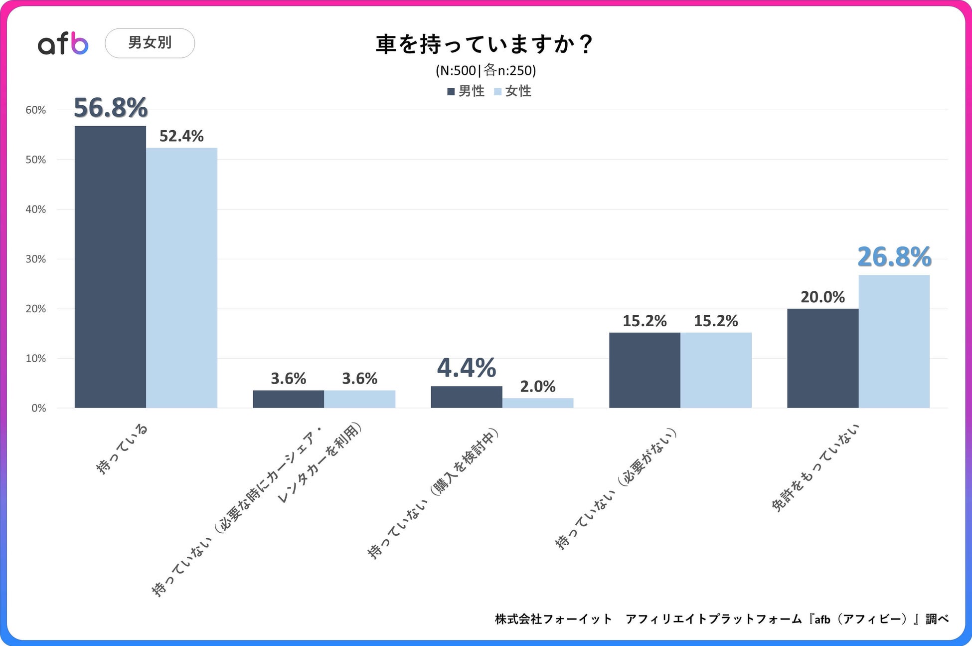 20代で車を持っているのは何%?車の所有に関するアンケートを実施