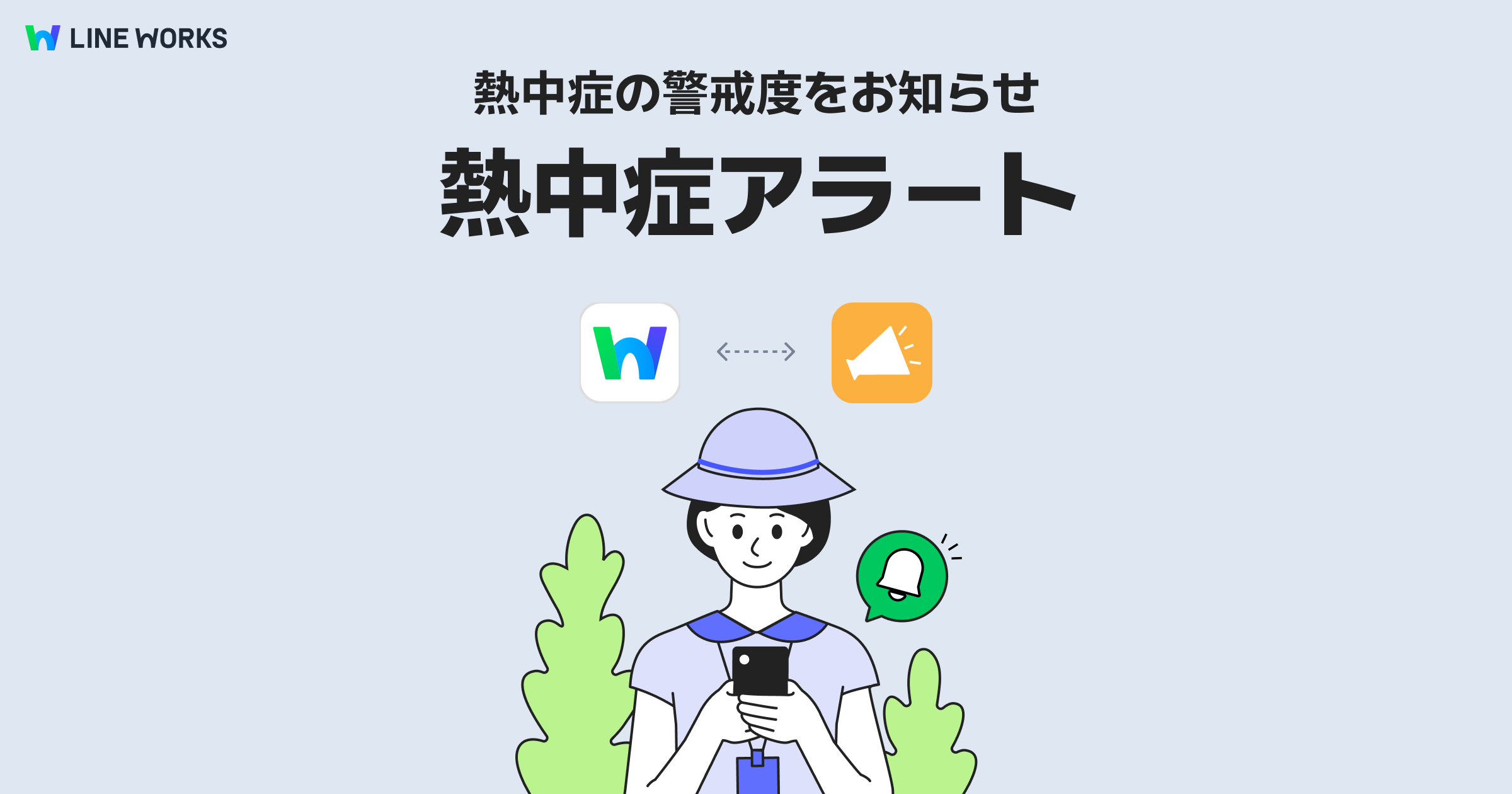 ビジネス現場のコミュニケーションツール「LINE WORKS」を提供するLINE WORKS株式会社(本社:東京都渋谷区、共同代表:島岡 岳史、増田 隆一)は、本日「LINE WORKS」上に熱中症への警戒度を配信する「熱中症アラート」の正式版提供を開始したことをお知らせいたします。本機能は、「LINE WORKS」のアプリディレクトリ※1 に追加され、無料でご利用いただくことができます。