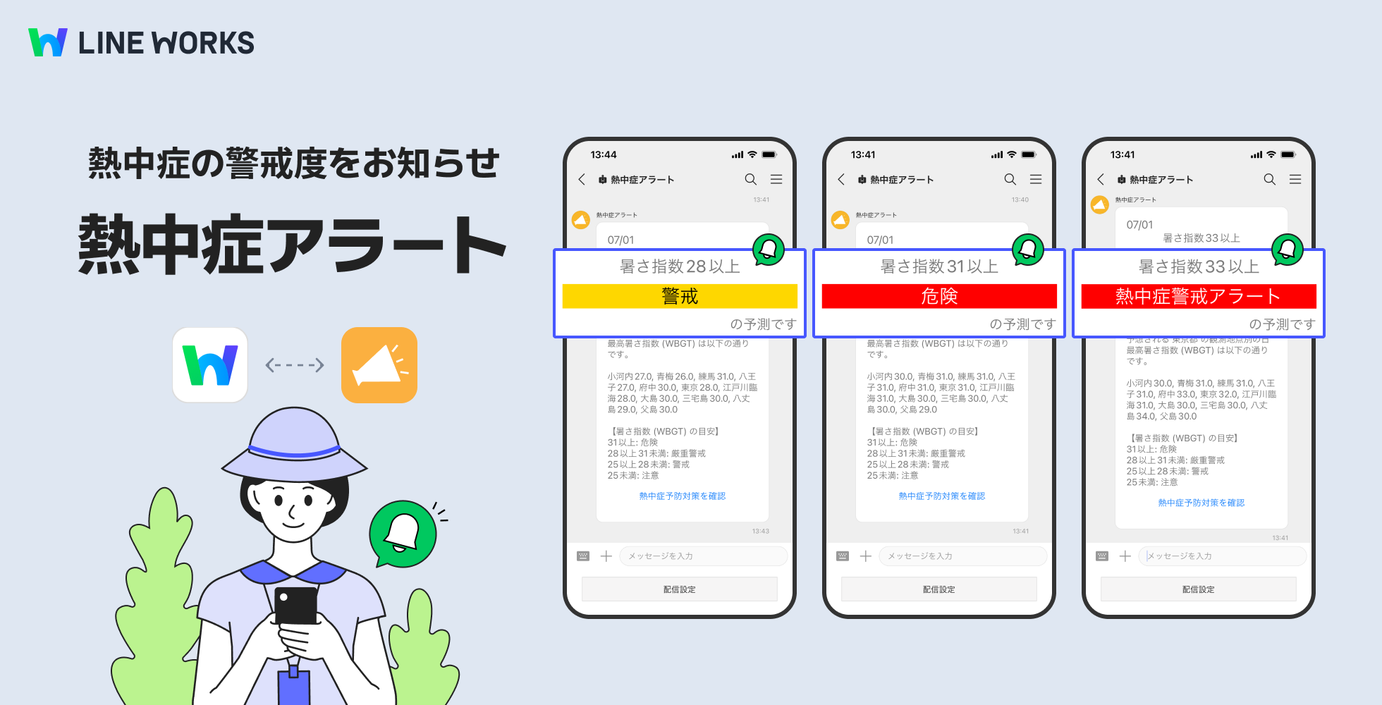 LINE WORKS、熱中症への警戒度をチャット上に通知する「熱中症アラート」正式版を提供開始