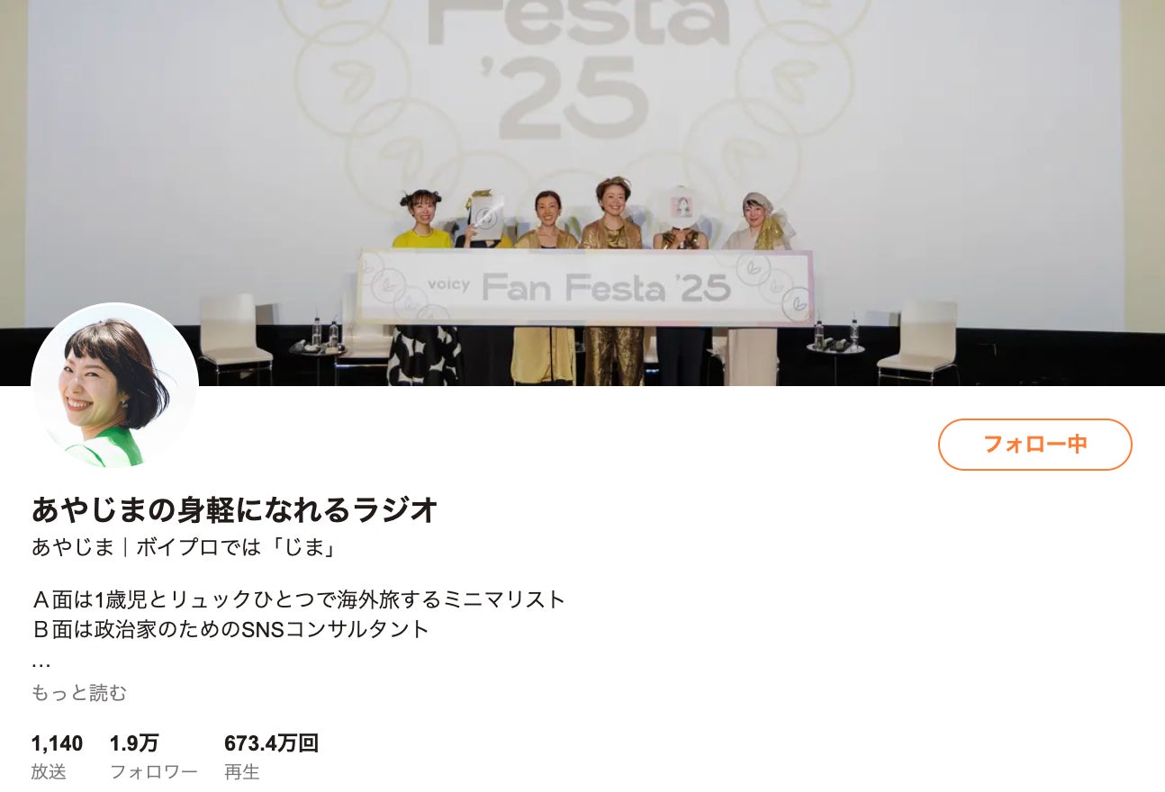 Voicyパーソナリティ あやじま |