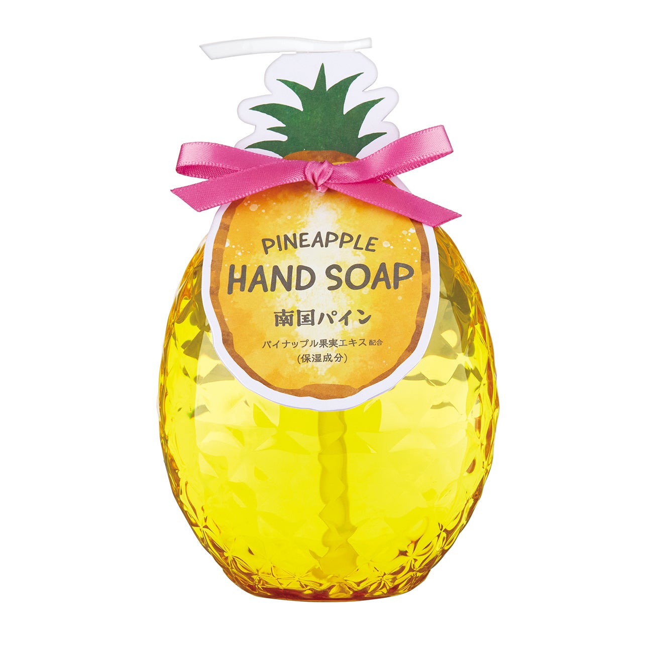 パイナップルのフォルムがかわいい、思わず並べたくなる手洗い用液体ソープ。泡立ちよくすっきりと洗い上げます。