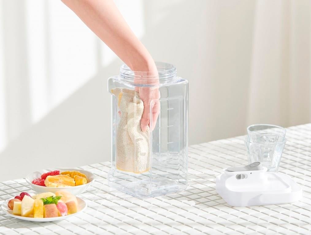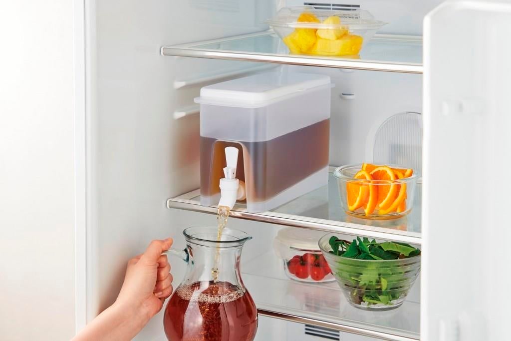 冷倉庫にすっぽり入るドリンクサーバー。フタがガバッと開いて補充もラクラク!パーツも取り外せるからお手入れも簡単なドリンクサーバー ソソギーナ。