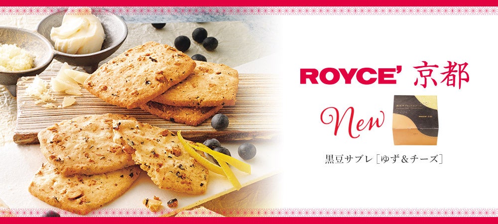 このたび、「ロイズ京都」に“黒豆サブレ[ゆず&チーズ]”が新登場。京都駅前地下街ポルタ「きょうこのみ」などと京都府内を巡る移動販売車で販売いたします。新しいロイズ京都のおいしさをお楽しみください。