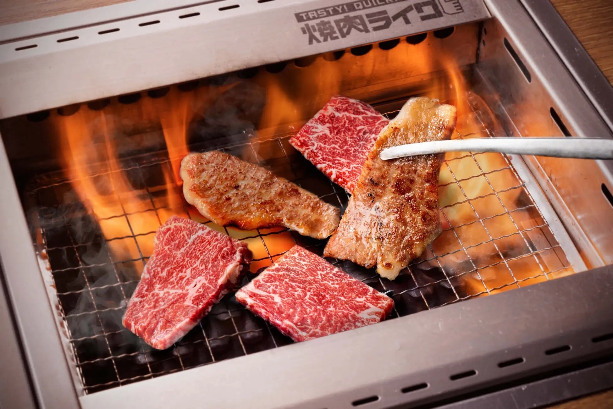 ”1人1台の無煙ロースター”を導入し、お客様のペースに合わせて好きな部位を好きなだけ自由に楽しむことができる焼肉ファストフード店です。「1人でも色々な部位を注文できる」、「女性1人でもお店に入りやすい」、「提供3分以内だから時間に余裕がなくても行ける」「1,000円で焼肉が食べられる」といった焼肉の常識を覆す、まったく新しい焼肉の楽しみ方を提供しています。注文はタッチパネル、卓上にはセルフのウォーターサーバーを設置、お会計もセルフレジで全て自分のペースで焼肉を気軽に楽しめます。また、無煙ロースターの為、換気能力も高く、臭いを気にすることなくご利用できます。(※店舗によって形態は異なります)