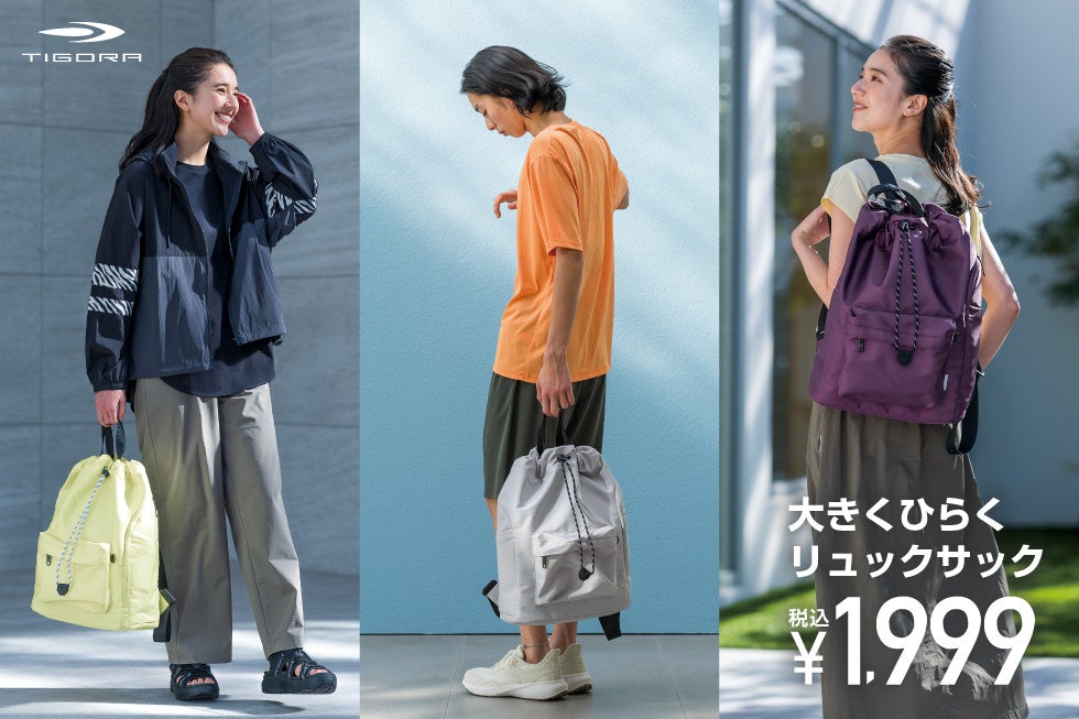 スポーツ用品販売の株式会社アルペン(本社:愛知県名古屋市、代表取締役社長:水野敦之)は、アルペンプライベートブランド「TIGORA(ティゴラ)」より、取り出し部が大きく開き快適に荷物の出し入れが可能な「大きくひらくリュックサック」(1,999円)と、TPU素材を採用し汗や汚れ、匂いを通しづらい「スポーツ巾着」(499円〜)を全国のスポーツデポ、アルペン、公式オンラインストアにて順次発売いたします。おでかけを快適にする2種のバッグで皆さまの春のお出かけをサポートします。