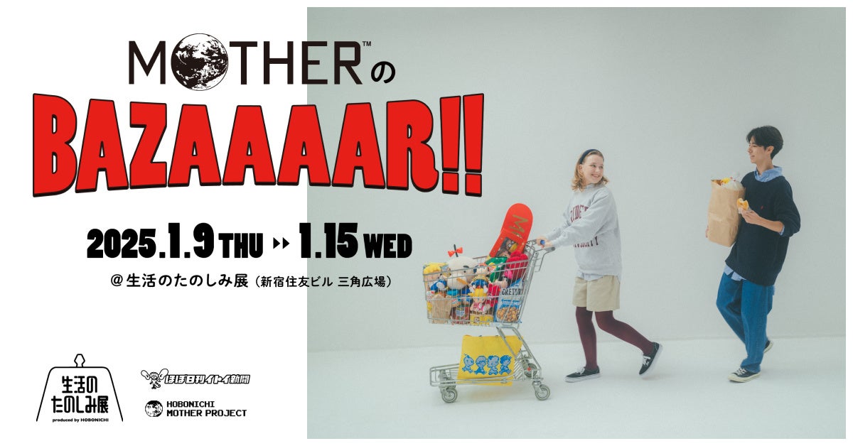 株式会社ほぼ日(代表取締役社長 糸井重里)が主催するコンテンツのお祭り「生活のたのしみ展」。初の新年開催となる2025年、ほぼ日MOTHERプロジェクトはたくさんの新商品とともに「MOTHERのBAZAAAAR!!」(マザーのバザール)をオープンします!