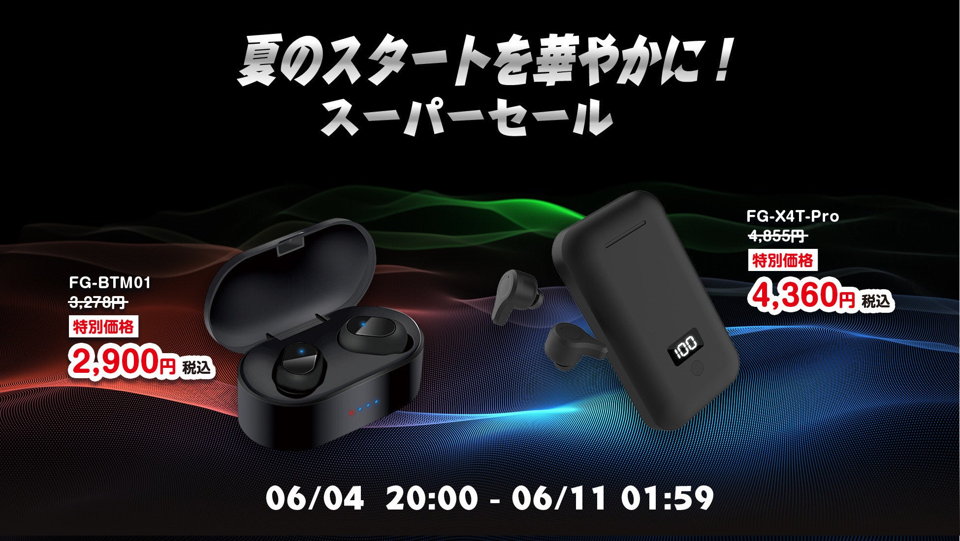 充電ケースがモバイルバッテリーになる無線充電対応の完全ワイヤレスイヤホン FG-X4T-Pro 通常価格 税込4,855円 → 10%OFFセール価格 税込4,360円