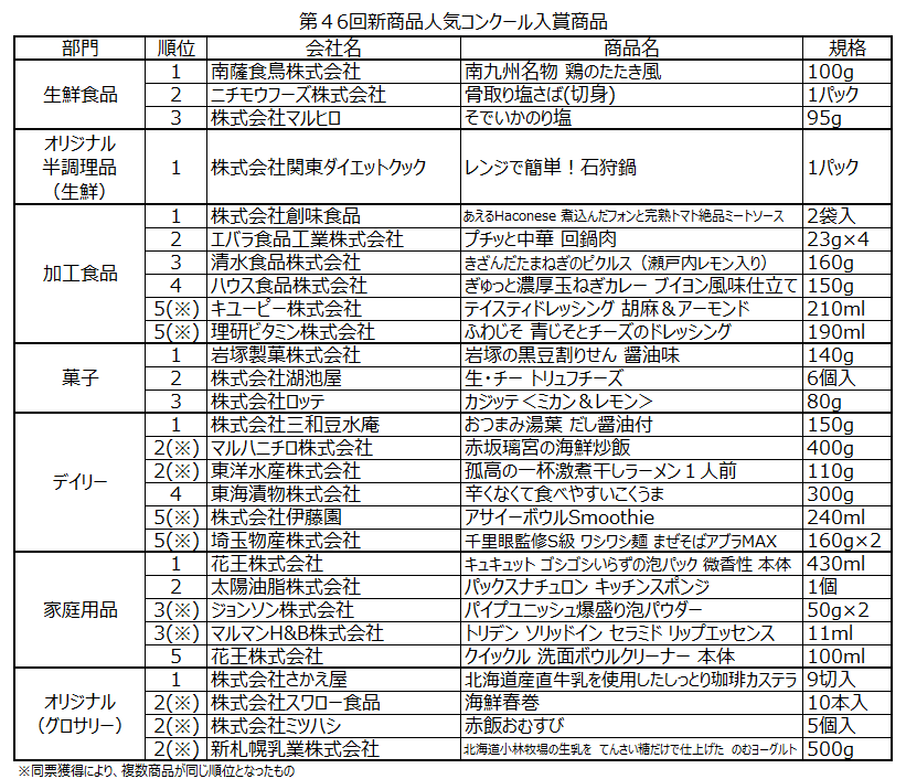 “いつもサミットでお買物をしているお客様が選ぶ”第46回『新商品人気コンクール』入賞商品決定