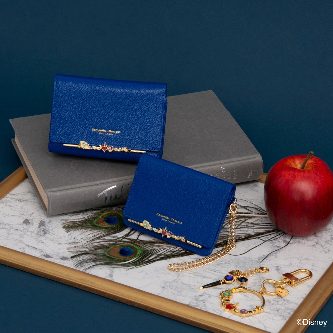 ハートに刺さった剣のモチーフや女王の王冠、毒リンゴを配置した金具に、寮服の青をイメージしたカラーリングに仕上げました。財布、パスケース、キーリングのラインナップです。深いブルーのストーンが輝く、マジカルペンをイメージしたチャームもあわせて、「ポムフィオーレ寮」の世界観をお楽しみください。