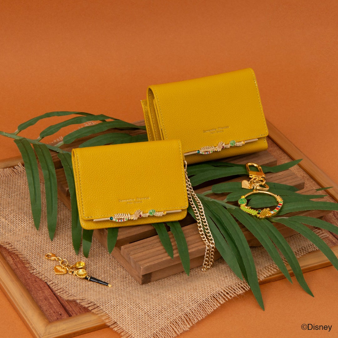 『ライオン・キング』の世界観からインスパイアされ、百獣の王の不屈の精神に基づき、スポーツや格闘技などを得意とする肉体派の生徒が多い寮。「サバナクロー寮」をイメージしたイエローのレザーに、サバンナに生息する植物のモチーフや爪痕、寮生が身につけているネックレスを金具にデザインした財布、パスケース、キーリングのラインナップ。イエローカラーのストーンが輝く、マジカルペンをイメージしたチャームもあわせて、「サバナクロー寮」の世界観をお楽しみください。