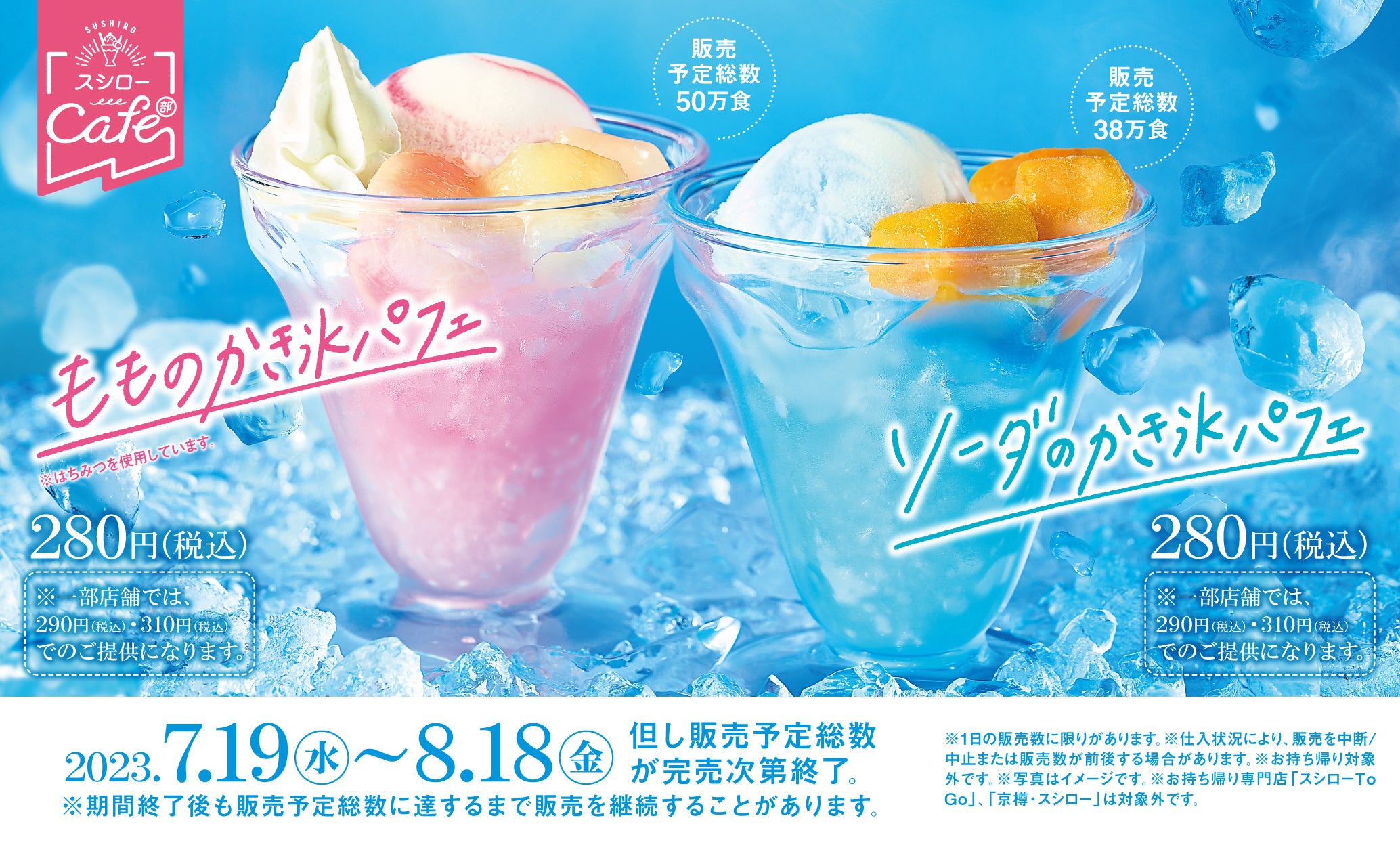 “スシローカフェ部”から、かき氷とアイスの両方が楽しめる!暑い夏にぴったり!ひんやり“かき氷パフェ”「もものかき氷パフェ」、「ソーダのかき氷パフェ」が登場!