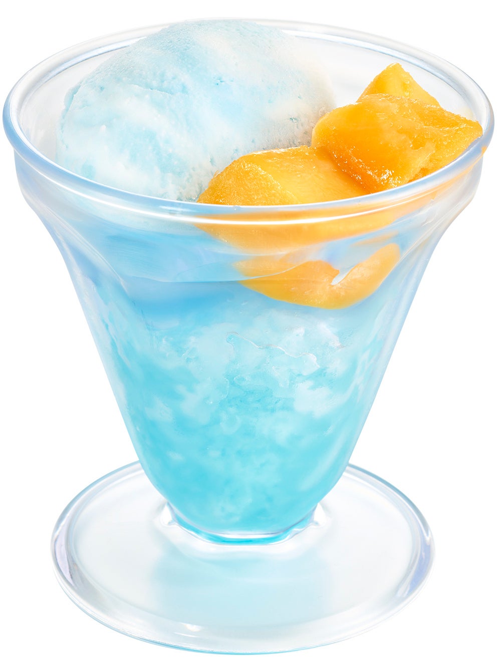 今回は暑い夏にぴったりな、かき氷とアイスの両方が楽しめる2種類のかき氷パフェが登場します。季節のフルーツ“もも”を満喫できる「もものかき氷パフェ」は、シャリシャリとした食感が特長のかき氷にももシロップをかけ、そこに国産白桃の果汁を使用したアイスと白桃コンポート、ホイップをのせています。アイスには、国産すももを使用した特製ソースを混ぜ込んでおり、白桃の上品さと酸味の効いたすもものさわやかさの両方をお楽しみいただけます。夏の定番“ソーダ”を使用した「ソーダのかき氷パフェ」には、かき氷にソーダシロップをかけ、ソーダとミルクのマーブルアイスにフローズンマンゴーを添えました。さらに、つるんとしたソーダゼリーも合わせることで、かき氷とアイス、ゼリーの様々な味わいを楽しめるパフェに仕上げました。