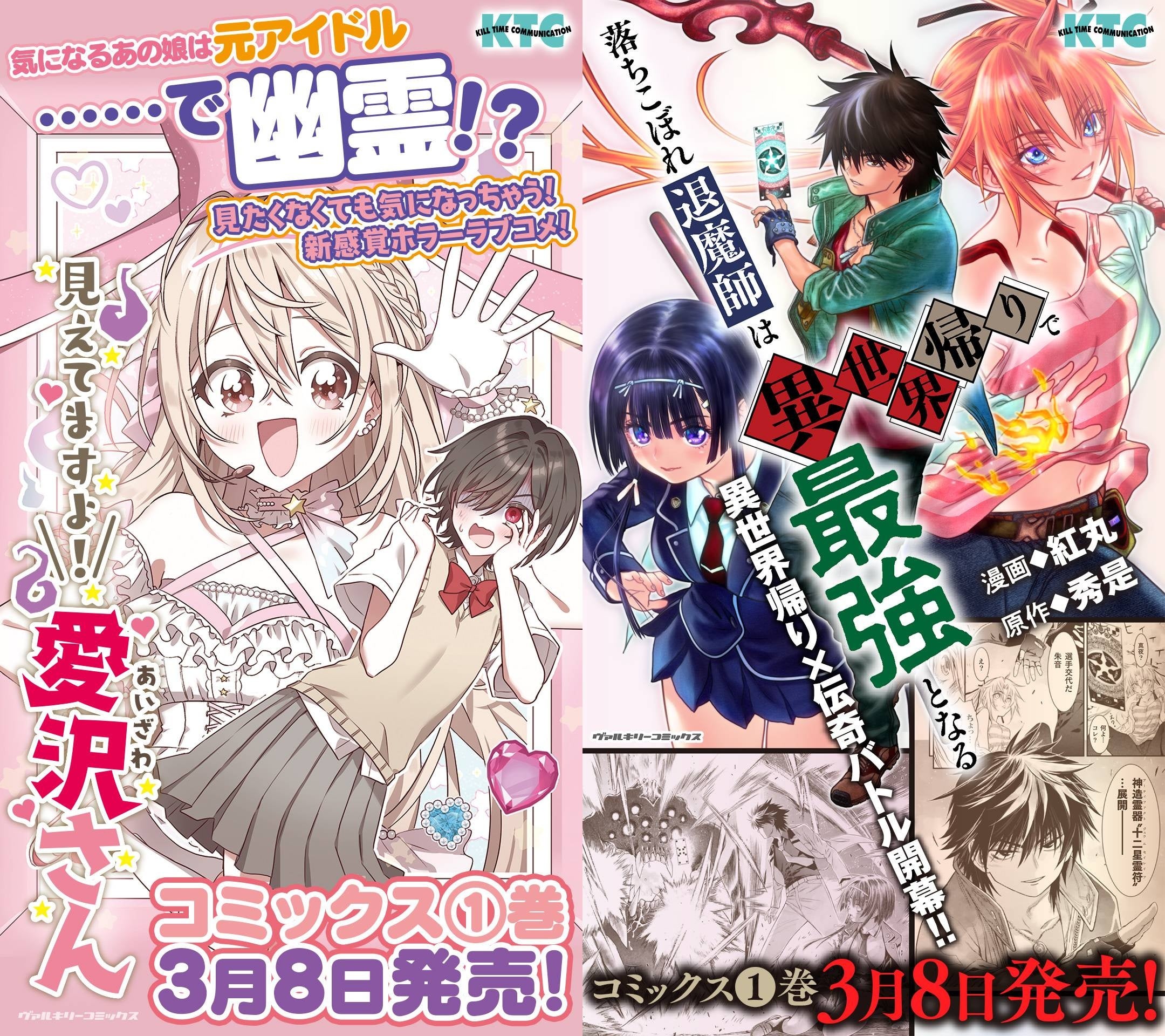 キルタイムコミュニケーション(東京都中央区)は、ヴァルキリーコミックス3月新刊『見えてますよ! 愛沢さん』『落ちこぼれ退魔師は異世界帰りで最強となる』のサイネージ放映を東京メトロ秋葉原駅にて開始いたしました。