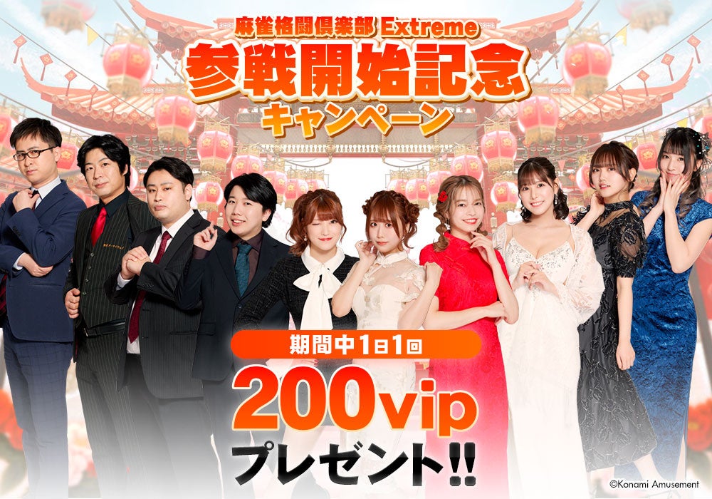 『麻雀格闘倶楽部 Extreme』では、キャンペーン期間中にプレーすることで、ボーナスとして各種カスタマイズアイテムなどと交換できる「FIGHT CLUB VIP」を毎日200vipプレゼントする「参戦開始記念キャンペーン」を開催します。