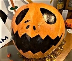 1.レストラン内ハロウィンコーナーに設置のお化けかぼちゃといっしょに撮影