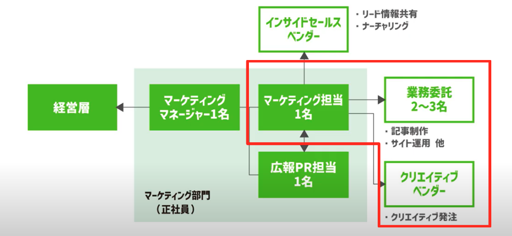 主な業務委託チームの役割は、サイト制作担当、コンテンツ編集担当、自社マーケターと連動したコンテンツ制作担当などです。この体制を構築してから、月約10本ペースで記事を公開できるようになりました。