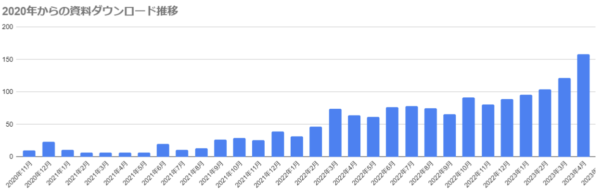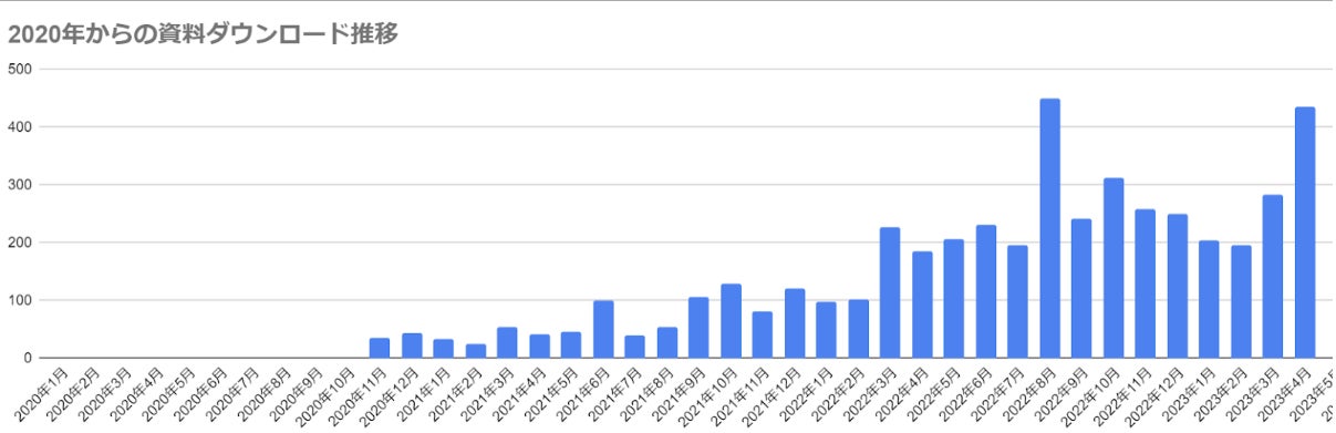 このたび、2020年6月〜2023年5月の約3年間で、受注額9倍、資料ダウンロード数は34倍の成果を生むことができたため、オウンドメディア運用の成果事例として、運用体制、具体的な成果の出た7つの取り組みを以下の記事にて公開しました。