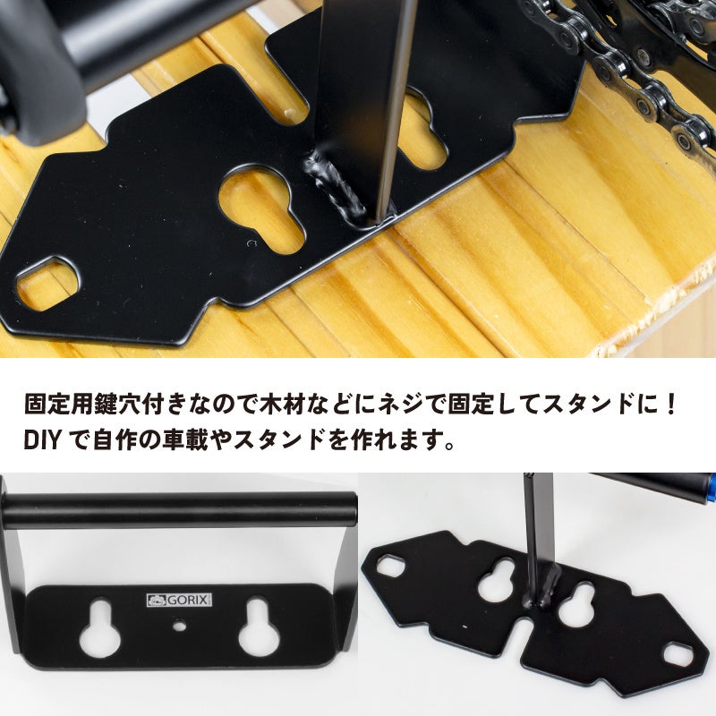 後輪を外した時にフレーム、フォークのエンドに取付けし破損などから保護するエンド金具です。ホイールを外して持ち運ぶ、輪行に便利なアイテムで、鍵穴付きなので木材などにネジで固定すればスタンドにもなります。