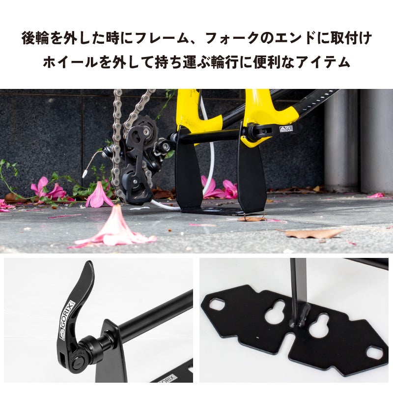 ホイールを外して持ち運ぶ輪行に便利なアイテムで