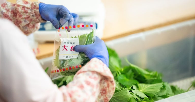 本プログラムでは、「飾るだけではない、食べておいしい大葉」を生産する中島農園で、収穫から袋詰めまでの一連の工程を体験します。