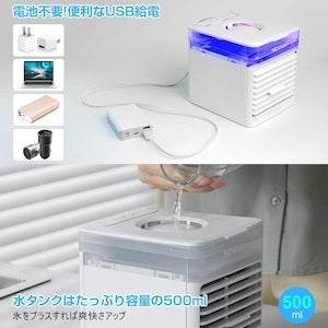 USB給電式なので、コンセントがない場所でもお手持ちのモバイルバッテリーなどで使用可能です。リビングやオフィス、または屋外でも、こちらの小型クーラーがあればいつでもどこでも涼しく快適にお過ごしいただけます。