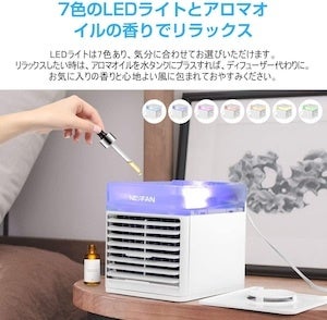 こちらの冷風機は涼しい風を送るだけではありません。空気清浄機として、加湿器として、さらにアロマオイルをプラスすればディフューザーとして機能する、心強い1台多役です!