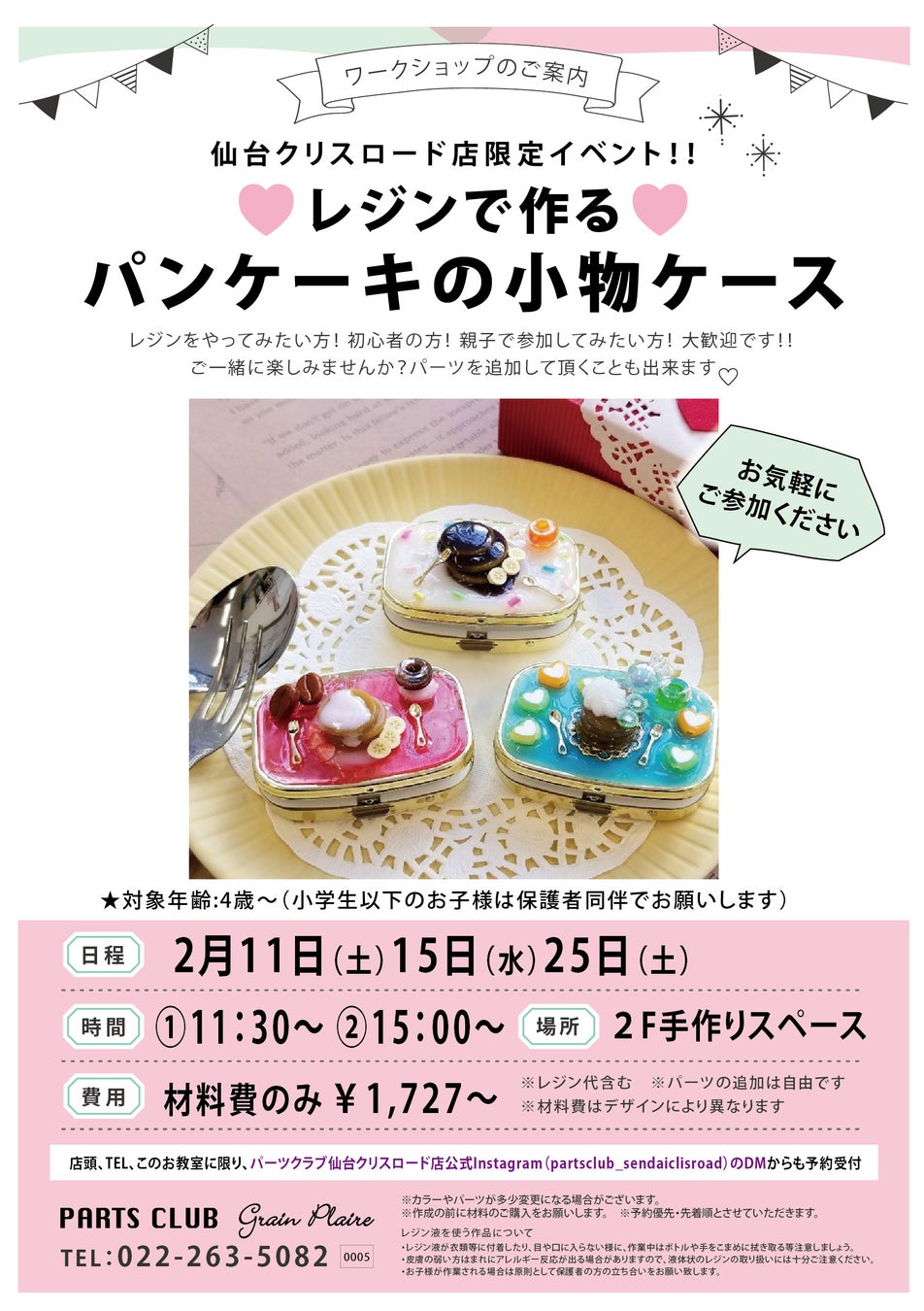 バレンタインにもオススメ!ビーズ&アクセサリーパーツショップPARTS CLUB、 仙台クリスロード店にてパンケーキの小物ケースが作れる「手作り教室」を開催。