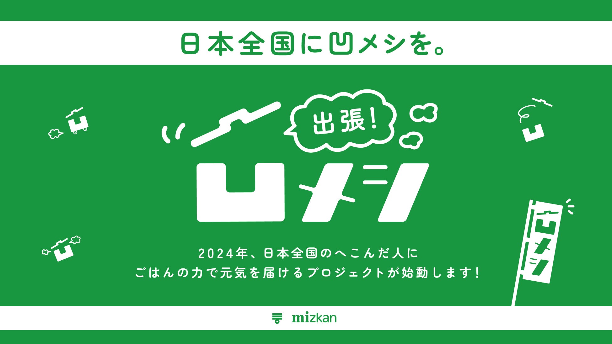 株式会社Mizkan (本社:愛知県半田市、代表取締役社長兼CEO:吉永 智征、以下:ミツカン)は、へこんだ気持ちをごはんの力で元気づける「凹(へこ)メシ」プロジェクトの第3弾の活動として、2024年は日本全国の皆様のへこみに寄り添う活動を実施しております。その活動の一環として、皆様からいただいた投稿をもとに、元気づけたい都道府県1箇所を決定し、ごはんを届けに駆けつける【出張凹メシ】イベントの実施を決定いたしました。