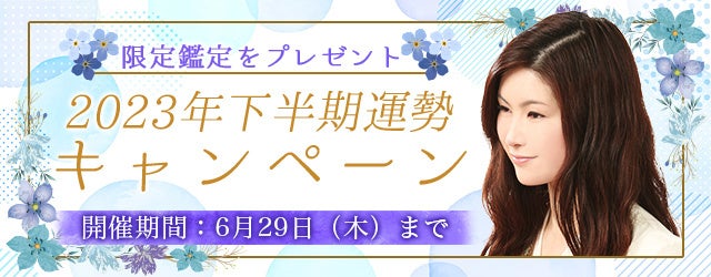 真木あかりの公式占いサイトでは、『2023年下半期運勢キャンペーン』を開催中です。期間中、対象の鑑定を占っていただいた方には、2023年の下半期についてさらに詳しく占える、キャンペーン期間限定の鑑定をプレゼントいたします。