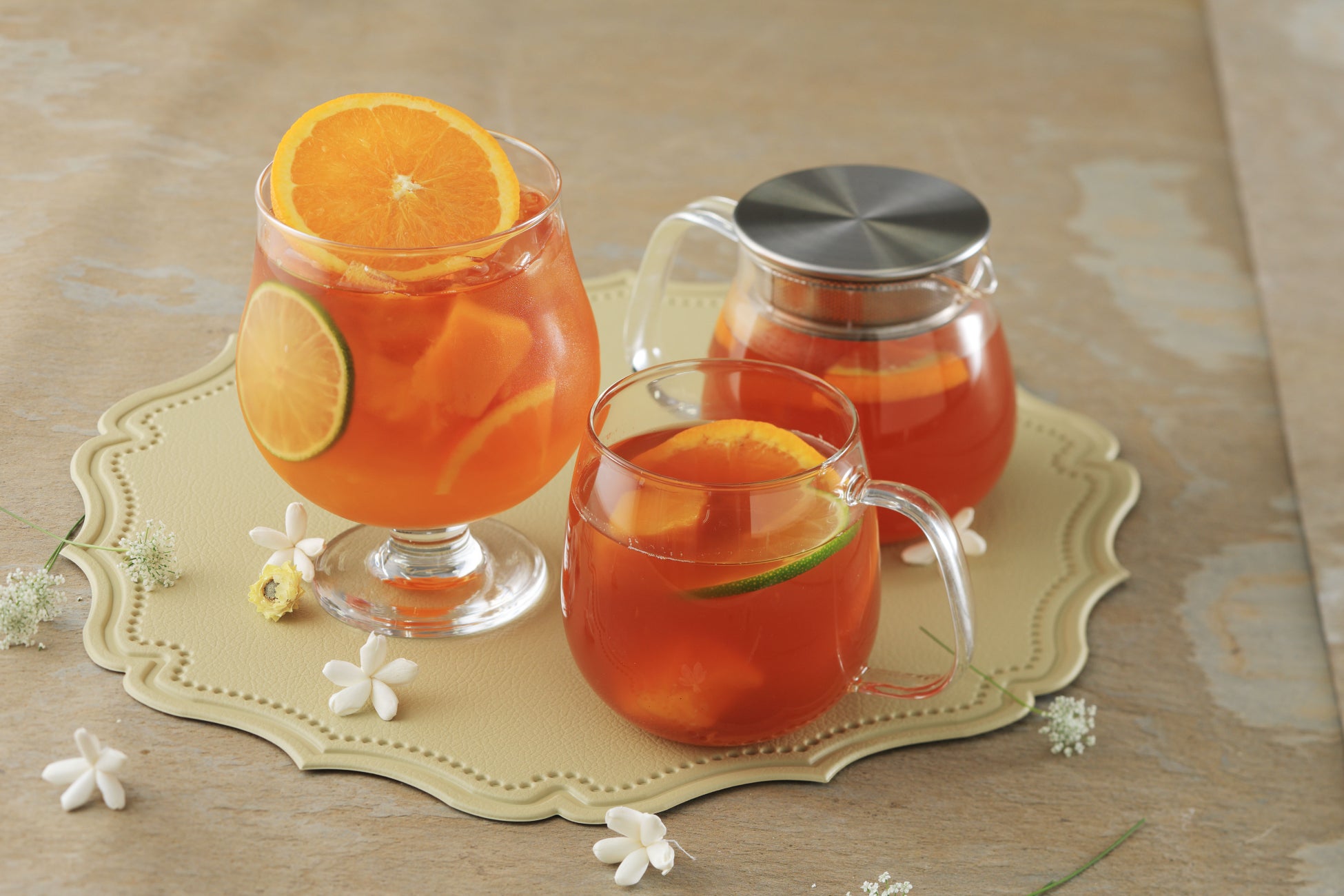 優雅なジャスミンの香りにみずみずしいライチの香りを添えたオリジナルフレーバーティー「ライチ&ジャスミン」に、相性の良いオレンジやライムなどの果肉と3種のフルーツソースを加え、柑橘の風味が調和したフルーティーな味わいに仕上げました。ほんのり甘い果実とジャスミンの香りに包まれる紅茶は、まるで風を運んでくれるようなさわやかな口当たりです。すっきりとしたおいしさが、気分転換にぴったりです。