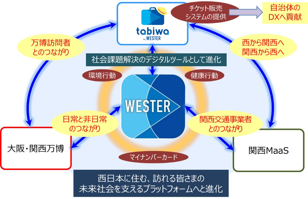 「WESTER」は、毎日の生活に寄り添うアプリとして、社会課題解決のデジタルツールとなることを目指しており、2025年には、「WESTER」が基軸となって、「大阪・関西万博」、「関西 MaaS」、「tabiwa」がシームレスに繋がり、未来社会を支えるプラットフォームとしての役割を果たしてまいります。