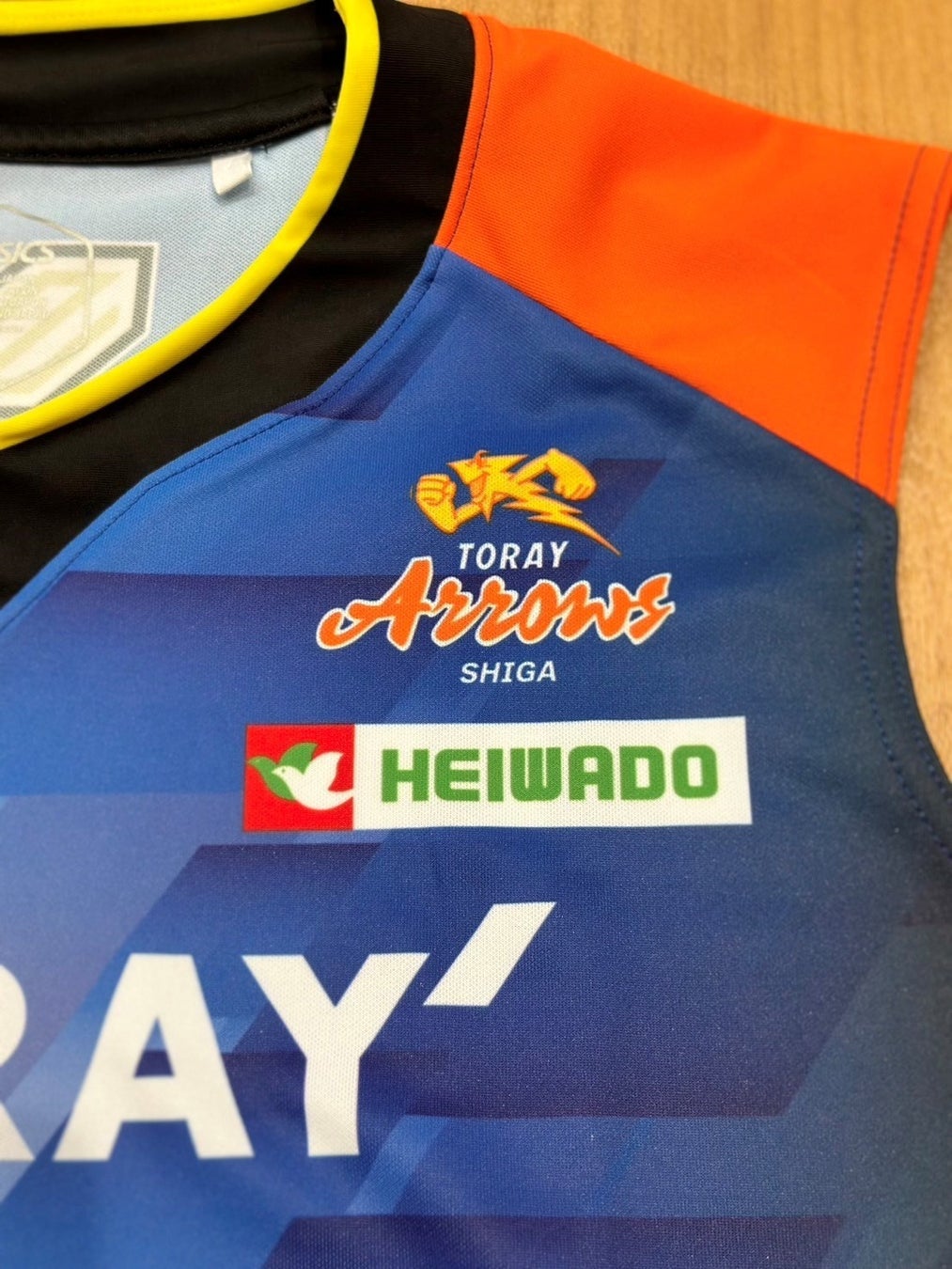 東レアローズ滋賀のユニフォームに、パートナー企業として平和堂のロゴが配置されます。