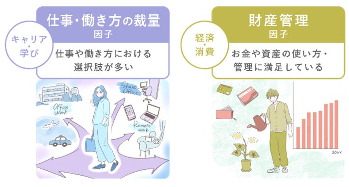 非単身世帯と比べて幸福度への影響が大きい因子として、「財産管理因子」「仕事・働き方の裁量因子」が挙げられます。前者は男性、後者は女性の方が顕著に幸福度への影響が見られます。お金の管理という側面、仕事や働き方という側面で「自分の満足いくような形で・多くの選択肢から選べる状態であるかどうか」が、単身世帯の幸福度を考える上で重要なテーマであると言えます。