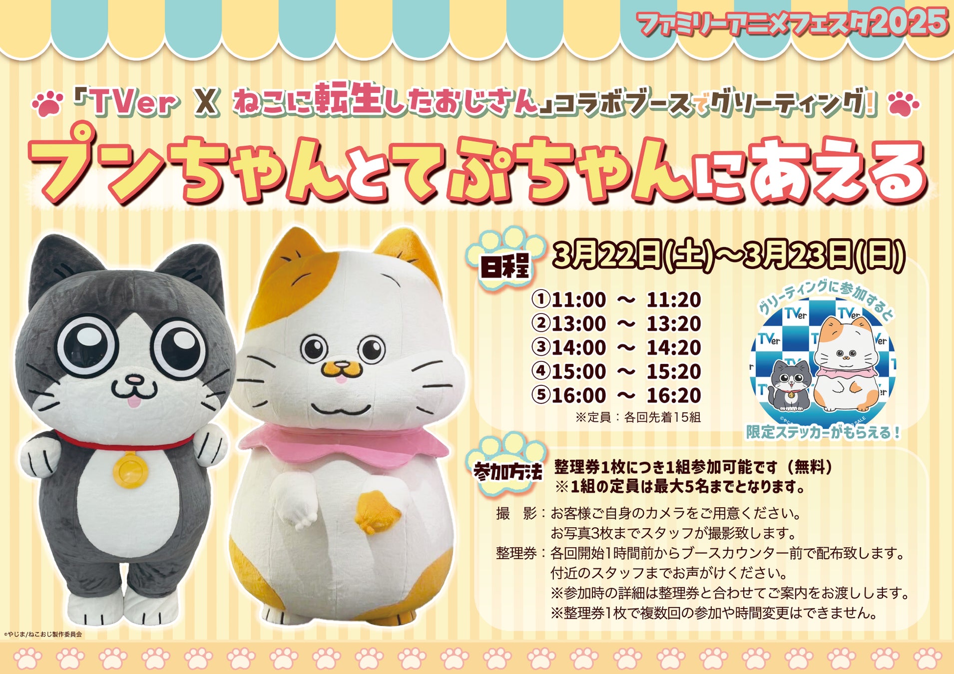 TVer、TVアニメ『ねこに転生したおじさん』とのコラボブースを3月22日〜開催の「ファミリーアニメフェスタ2025」に出展