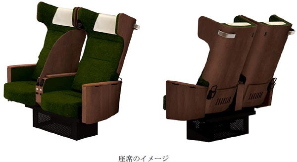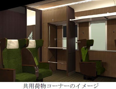 配席は3列(2列+1列)とし、一般車両の座席と比べて、座席幅と足元の前後のスペースを広くとるとともに、リクライニングに座面が連動する機構を採用することで、快適な乗車環境をご提供します。また、周囲の視線が気にならない座席頭部側面の形状や2列シートに設けているパーテーションにより、“自分だけのプライベートな空間”を感じていただけるようにしています。そのほか、収納式テーブル、ドリンクホルダー、荷物用フック、マガジンラック、読書灯、コンセントなどの機能を備えています。