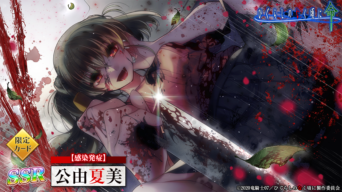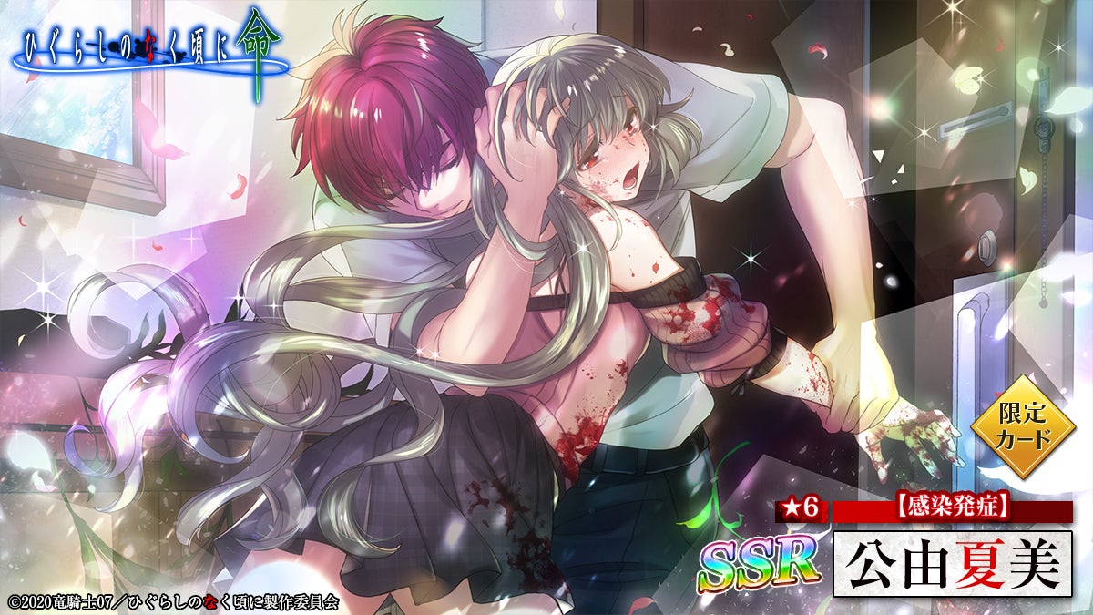スマートフォンゲーム「ひぐらしのなく頃に 命」にて【オヤシロ感染ガチャ】を開催!鬼頭えん先生による描き下ろしイラストを使用した『【感染発症】公由夏美』が初登場!!