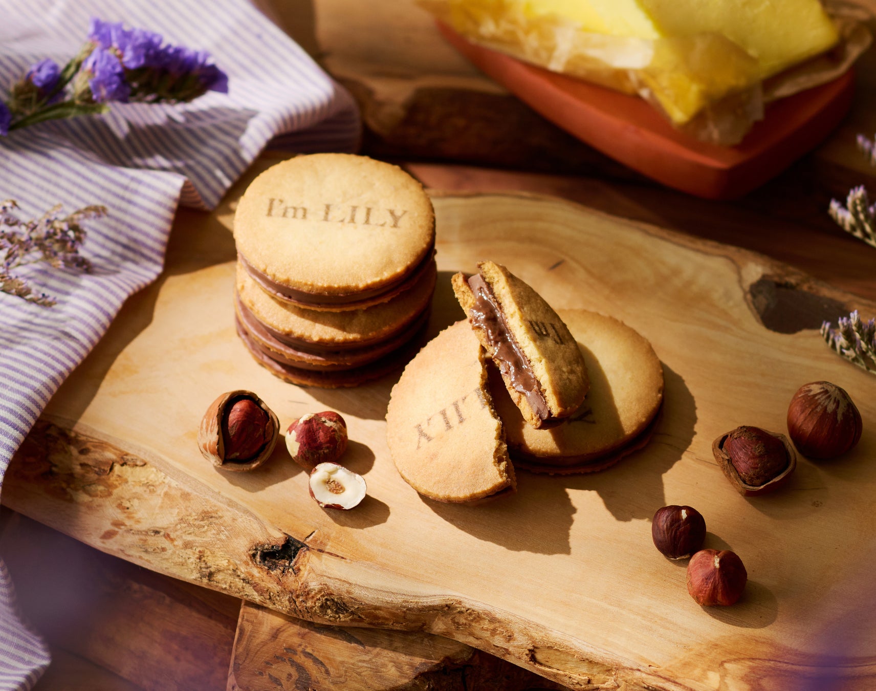 「I’m LILY(アイム リリー)」の定番人気商品である“ショコラサンドクッキー ヘーゼルナッツ&バター”。