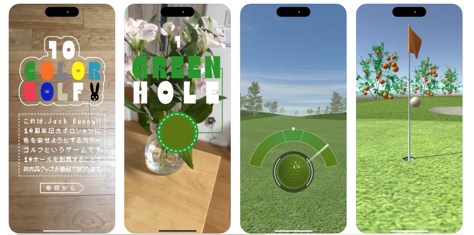 『変なゴルフJB』は2023年にブランド誕生10周年を迎えたJack Bunny!!が「ありがとう」の思いを込めたデザインの『10 COLORS POLO』のアイテムの発売にちなみ10色を使ったカラフルで、拡張現実的なちょっと変なゴルフゲームです。