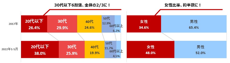 株式取引をはじめとするトレーディングサービスにおいては、業界最低水準の手数料体系(※1)の設定やセキュリティ強化に加え、「iSPEED®」シリーズや「MARKETSPEED II®」など、すべてのプラットフォームで最先端の取引ができる環境整備など、安心かつ快適な取引環境の提供に尽力しています。さらに、近年では資産形成層の方にも「はじめる」から「つづける」まで、長期間ご利用いただきやすいサービス拡充に努めており、「楽天ポイント」で投資信託などが購入できる「ポイント投資」サービスや、「楽天カード」クレジット決済での投信積立、ご家族それぞれが特典等を受けられる「家族プログラム」など、様々なサービスを展開しています。2022年6月からは、新たに事前入金の必要なく投信積立ができるオンライン電子マネー「楽天キャッシュ」決済の提供も開始しました。これらの取組みの結果、多くの方に楽天証券をお選びいただき、2021年12月に証券総合口座数が700万口座に到達してから約6カ月で100万口座増の800万口座を突破しました。2022年1月~5月における新規口座開設者は、30代以下のお客様が6割強を占めており、引き続き資産形成層は顕著に幅広い広がりを見せています。