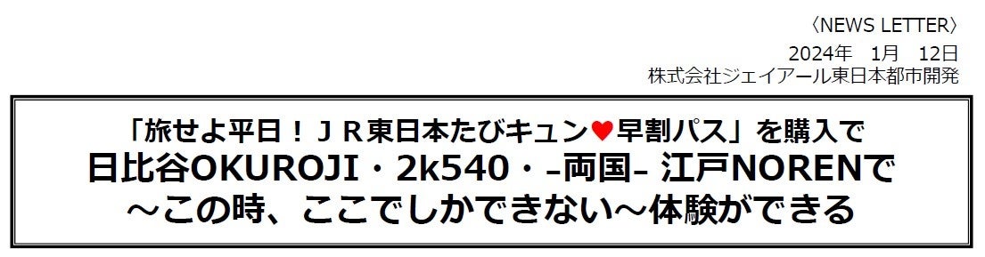 東日本旅客鉄道株式会社が発売する「旅せよ平日!JR東日本たびキュン♥早割パス」をご利用の皆さまに、株式会社ジェイアール東日本都市開発の運営するさまざまな施設で受けられる、「~この時、ここでしかできない~体験」をご用意いたしました。