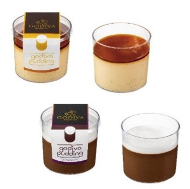 ホワイトチョコレートを使用した「ゴディバ プリン ブラン」とダークチョコレートを使用した「ゴディバ プリン ショコラ」、チョコレートの使い方にこだわって作ったプリンです。